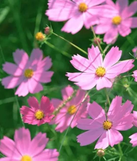 一年生或多年生草本,株形高大,叶形雅致,花色丰富,有粉、白、深红等色,花期6-8月。波斯菊适于布置花境,在草地边缘,树丛周围及路旁成片栽植美化绿化,颇有野趣。