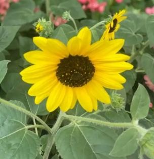 向日葵的花期在7-9月,果期在8-9月。向日葵是头状花序,生长在茎的顶端,俗称花盘。花盘总是向着太阳的方向,因此得名“向日葵”。经过科学家的研究,解密向日葵“向日”的原因是因为植株里面含有一种特殊性的生长激素,这种生长激素怕光,可以移动,常常躲在植物花盘下面的阴影里,向阳一侧浓度低,背光的一侧浓度就会比较高,所以背光的一侧生长很快,向日葵就会弯曲朝向太阳。