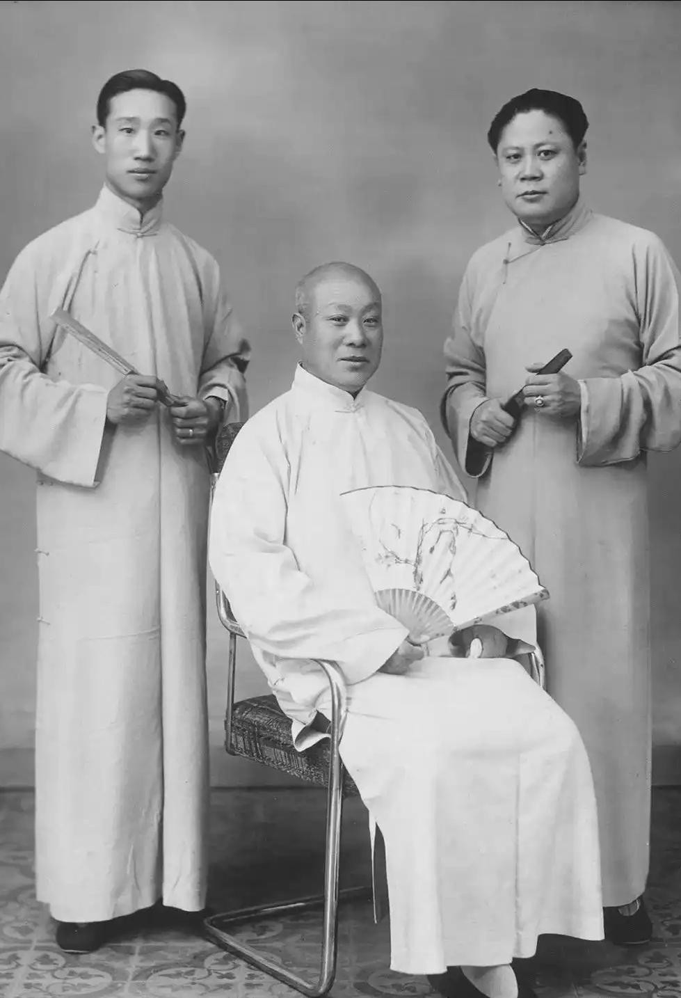 萧长华与萧盛萱、马富禄合影