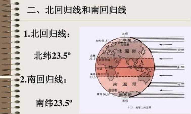 2北回归线的层面数值黄赤交角,是一条关键纬线,它深深影响着与其说紧密相关的其他地理环境状况,如太阳光直射点、四季、五带和气压带、风带、温度带、自然带转变这些。