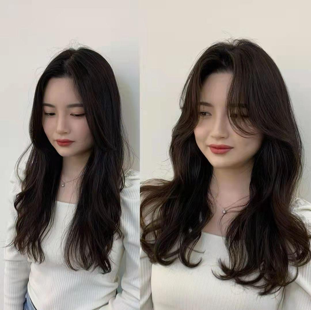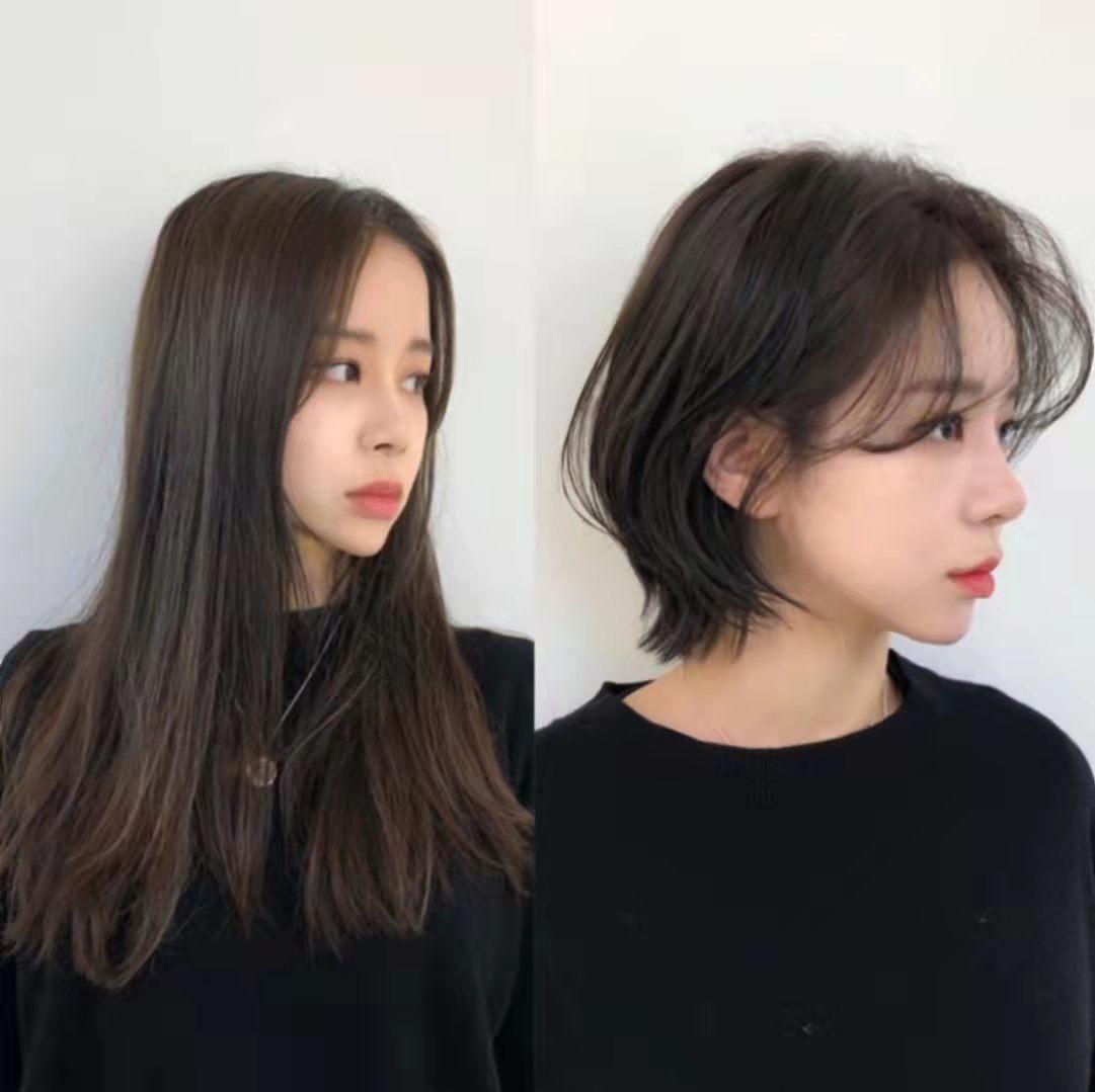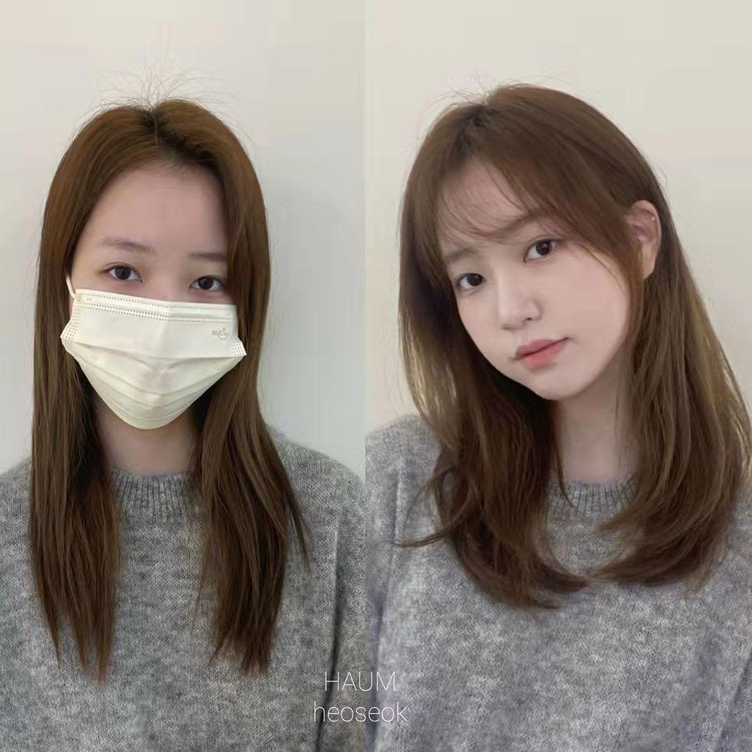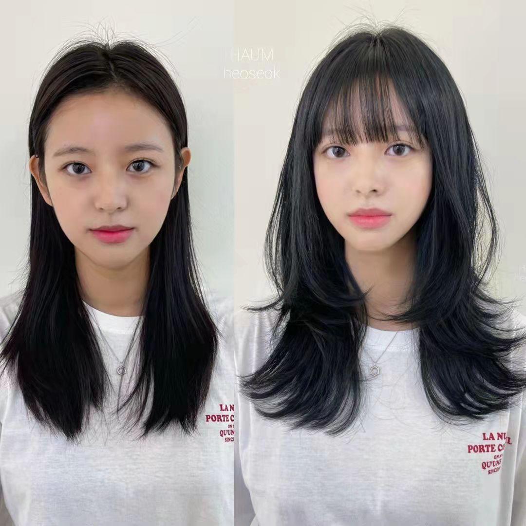 有时候,换发型无需大动干戈,只需要把发梢干枯的头发剪短一丢丢,层次稍微调整一下,再把发量控制到适合长度的厚薄,然后再剪一款适合脸型的刘海,可能就会给你带来不一样的感觉,比如上图。