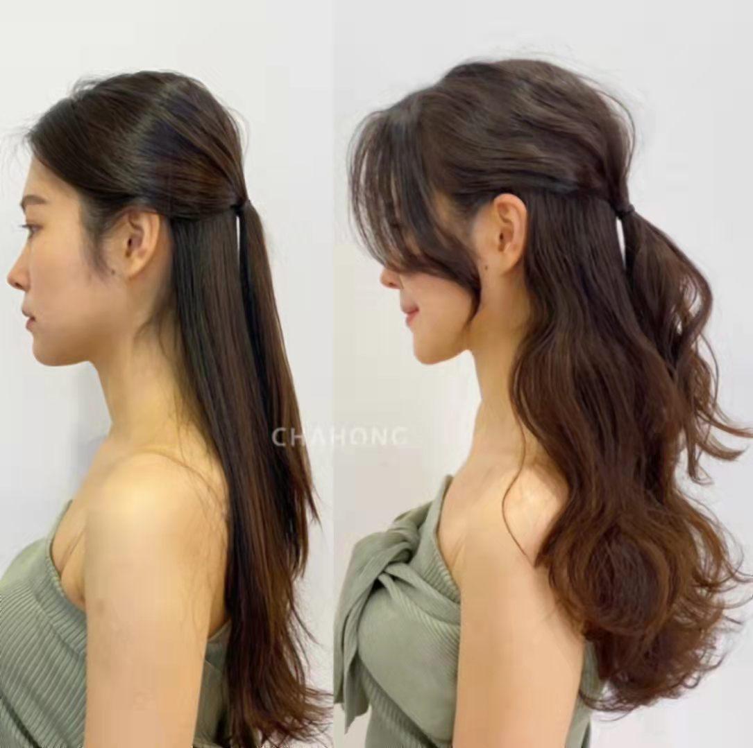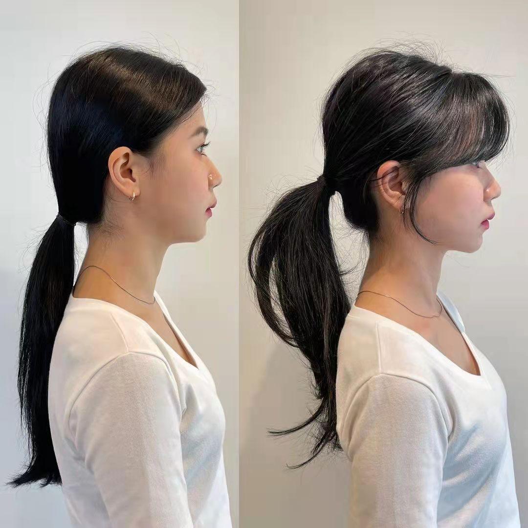 经常扎马尾会导致发际线后移,只需剪一款适合自己脸型的刘海,既能缓解发际线的压力,又能修饰脸型。下面的头发长期不剪的话,发尾也会毛躁,可以调整发型的层次以及厚薄,再烫个C卷,增加发型的动感效果,好打理也更有型。