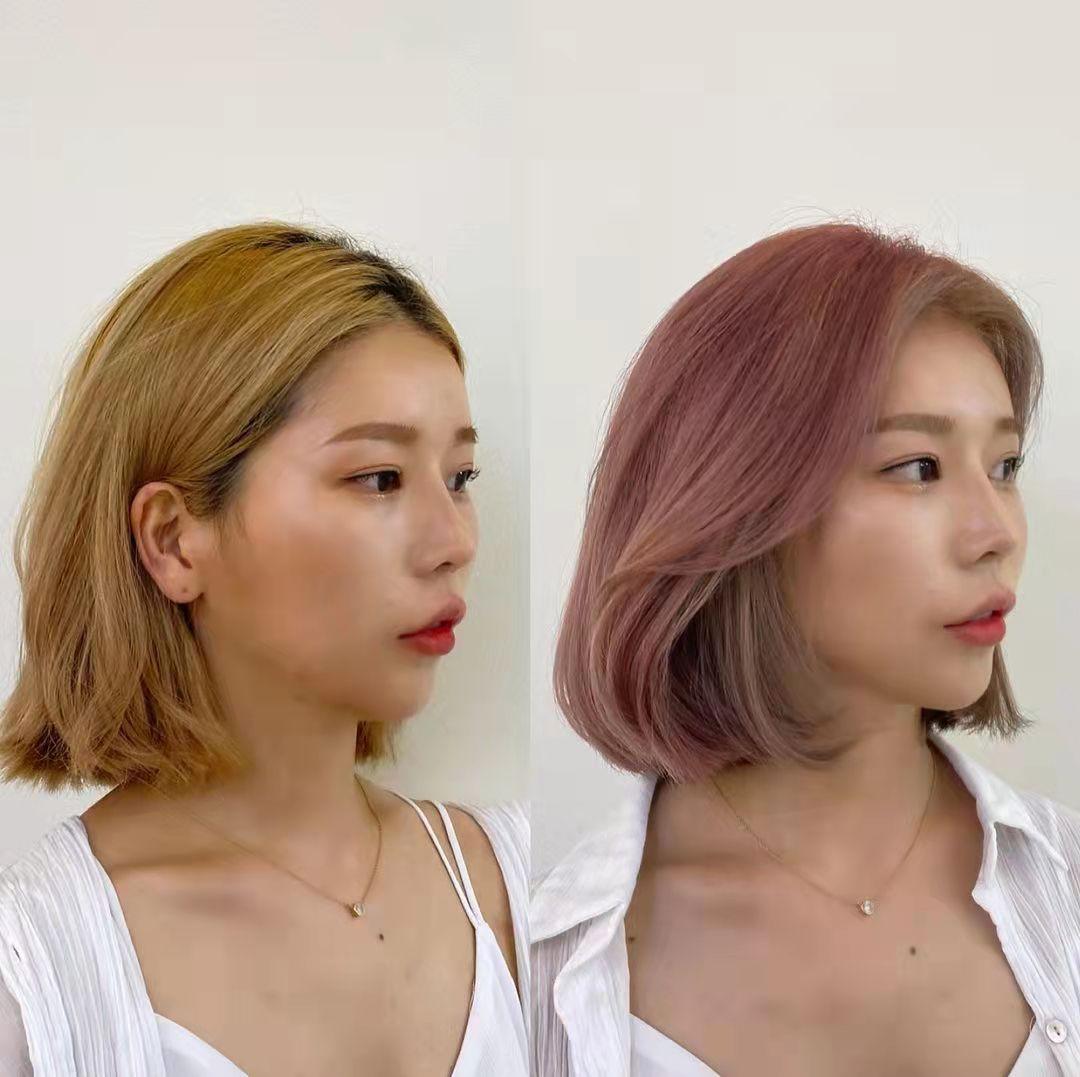 对于经常染潮色的妹子来说,最尴尬的莫过于掉色后底色的焦黄感。而且发质干枯毛躁,缺乏质感和光泽度。此时只需要把发型的底线稍微修剪得整齐一些,换个发色,不仅提升了肤色亮度,看起来也更时尚了。