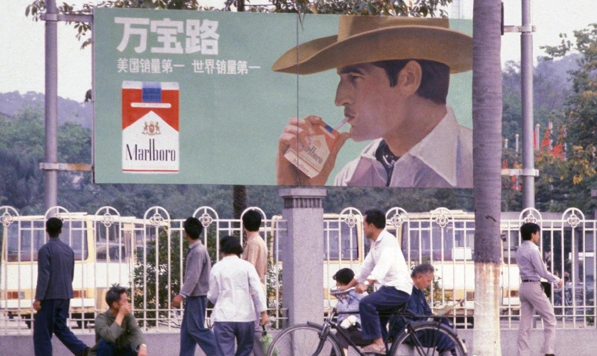 (26)1980年,广州街头的时髦小伙1980年,广州街头,外国摄影师Francois Lochon拍摄。街头的巨幅广告牌下,行人来来往往。边上的那个小伙,穿着很是时尚,他穿着皮鞋、西裤、衬衫,走在路上甚是显眼。