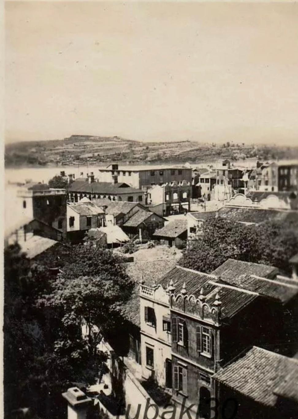 (17)湖北宜昌。原图片标注为1930s。可能有误。图1,侵华日军从有抗日标语的废墟前走过。这组照片可能是拍摄于1941年秋宜昌战役后。