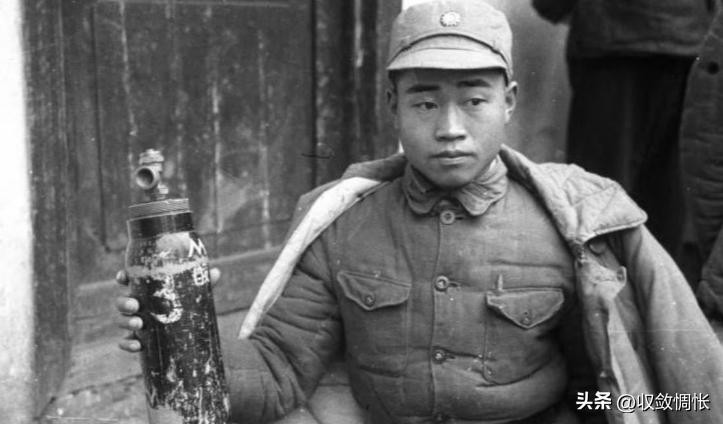 (04)1943年12月,湖南常德的一位士兵,手里拿着一个罐子,正在向其他士兵展示。这是常德会战结束之后,他们从日军手中缴获的化学武器。仅仅是这一战,就有大约7600名无辜群众,死于化学武器的攻击。