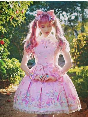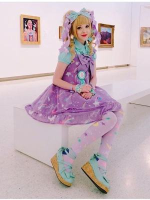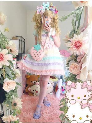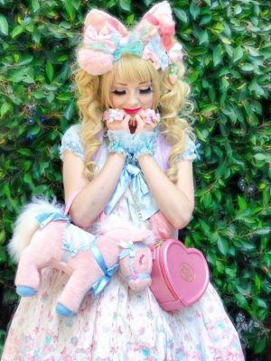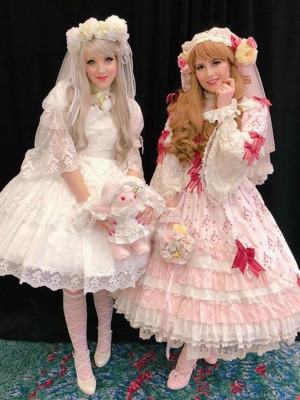 一、SweetLolita甜美洛丽塔———以起源粉红、粉蓝、白色等粉色系列为主,衣料选用大量蕾丝,务求缔造出洋娃娃般的可爱和拍烂漫,在印花主题上女装多为甜点、兔子、熊等。头饰大量使用蝴蝶结,洛丽塔风格衣服图片。最夸张最华丽的甜美洛丽塔,可能日本人看起来就像个行国家走的生日蛋糕。