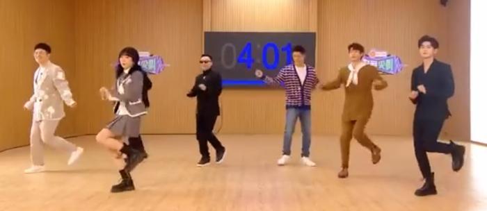 而几个大老爷们在后边就有点尴尬,除了性格比较大大咧咧的大张伟能“扭”出几个动作,陈赫、黄景瑜、魏大勋、小鬼、任嘉伦,GAI、潘玮柏、黄明昊等人都笑得很勉强。