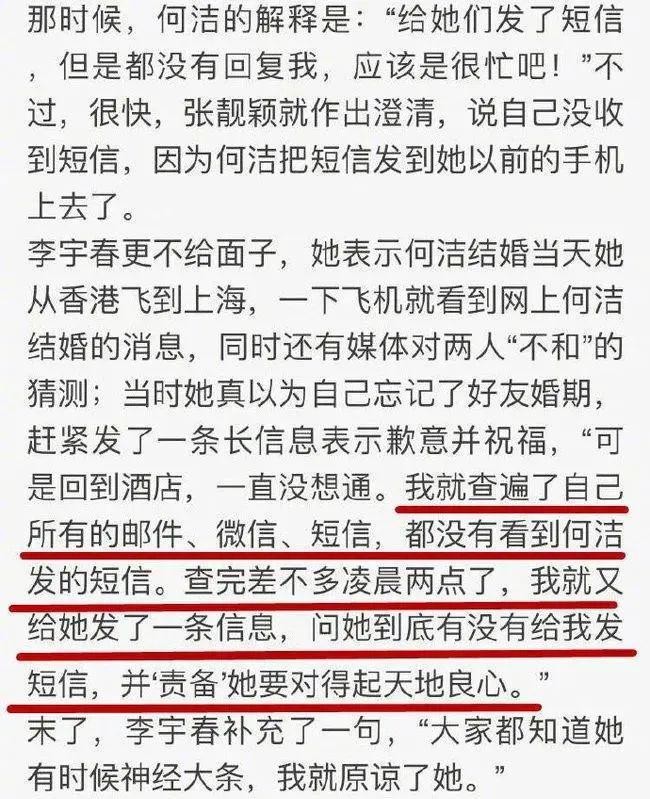 工作到半夜的李宇春,回到家翻遍了所有的通讯工具,都没有找到一条关于何洁的消息。