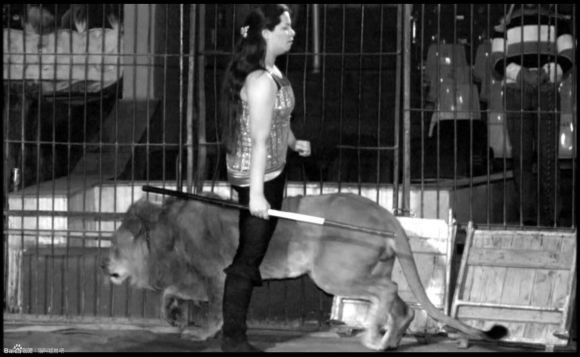 马戏团中的巴巴里狮