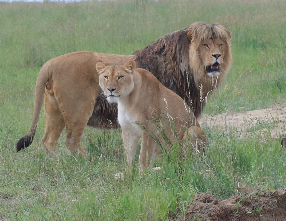 与非洲狮子杂交的巴巴里狮后代,具有浓密的鬃毛。