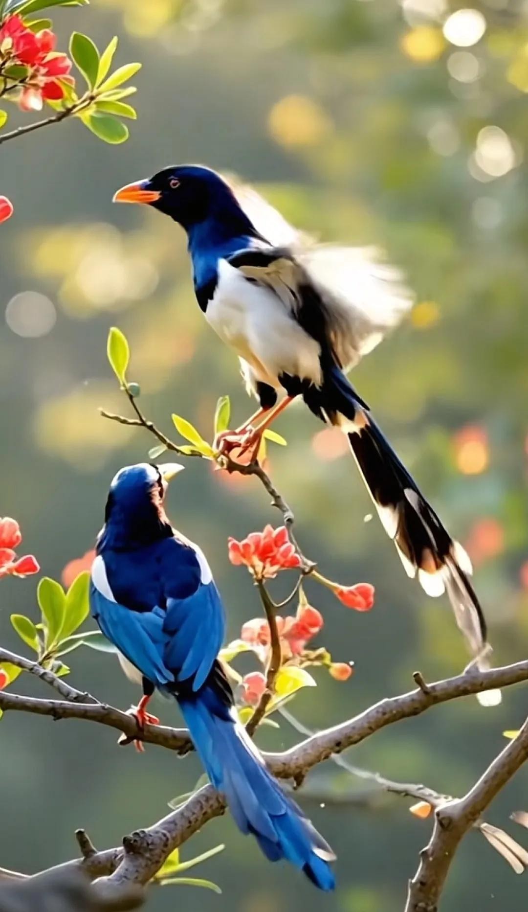 如果说一只喜鹊代表着喜事临门,那么两只喜鹊则寓意着喜上加喜。在中国人的文化观念里,成双成对的事物总是寓意着美好和圆满。两只喜鹊相互依偎,或是在枝头嬉戏,或是在天空中比翼齐飞,这样的画面充满了温馨和幸福。