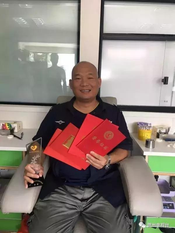 (全国无偿献血奉献奖金奖获得者:麦志铭(贺州人)