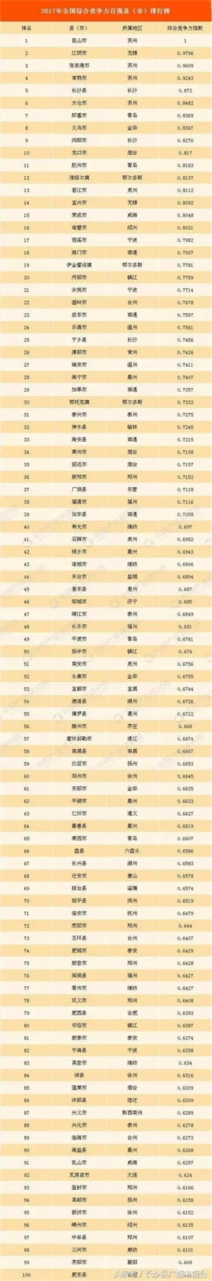喜讯!2017最新全国百强县名单发布!长沙县榜上第五!