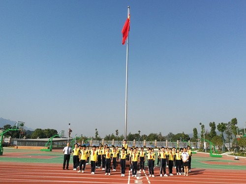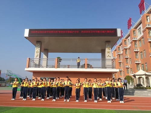 张家界金海实验学校国旗下展示《中国字,中国人》手势舞