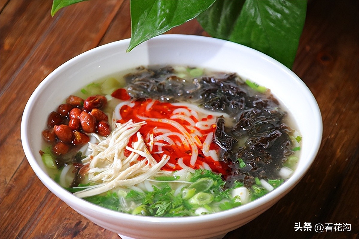40.灵宝市的美食小吃-灵宝鸡汁米线。所选用的鸡汤是选用正宗散养的土老母鸡,经数小时慢火熬制而成,细高的大钢桶总在熬着奶白色的浓高汤,翻滚着的白浪在述说着它的浓香,好鸡汤的浓郁香惹来食客,加上爽滑劲道米线,配以紫菜、虾米、鸡丝提鲜。一口米线,一勺鸡汤沁人心脾,让人唇齿留香,回味无穷。灵宝鸡汁米线除了其鲜美纯正的味道外,还含有丰富的高蛋白和丰富的维生素,容易被人体消化,更能增强人体营养,温补养胃。