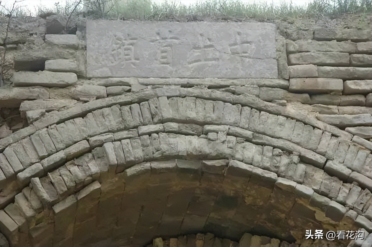 30.灵宝市的历史遗迹-大子营古砖洞。位于西阎乡大字营村南部,原崤函古道中,洞为东西向,洞东西长12.4米,洞高4.1米,洞面宽6.8米。洞为蓝砖筑砌,下有础石,地基为白麻石条筑砌,上以蓝砖平卧错缝筑砌,蓝砖中以白灰抹缝。平铺蓝砖33层开始起拱,以蓝砖侧卧筑砌成为拱形,后以蓝砖平卧一层,再以蓝砖侧卧筑砌,反复三次,为三层。在洞门西部正中顶部,有灰白石质横额石,额残长0.8米,宽0.3米,上有阴刻“三藩要地”四字,其中“地”字已掉,留“三藩要”三字。洞东门上中顶部,有青石质匾额,长1.2米,宽0.5米,中阴刻“中土首镇”四字,其中“土”字的右上部加一点成为“圡”。右侧竖向阴刻“天啟四年冬立”。