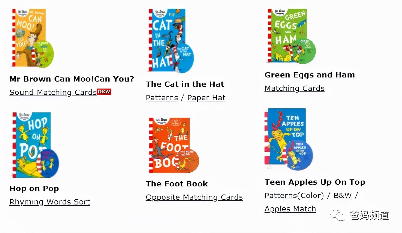 比如大名鼎鼎的Dr. Seuss 的绘本,就提供了各类手工活动, 而且活动也都是可以直接打印的。