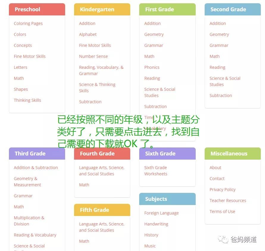 它被称为“美国小学全科练习册” ,为美国家长和教师提供孩子从preschool到Grade 6全部的练习册,所有资源全部免费下载。