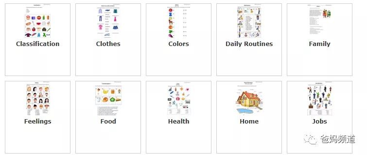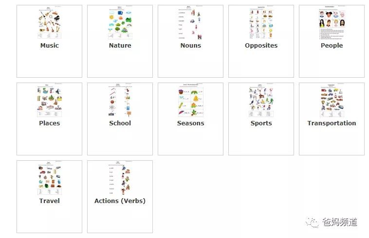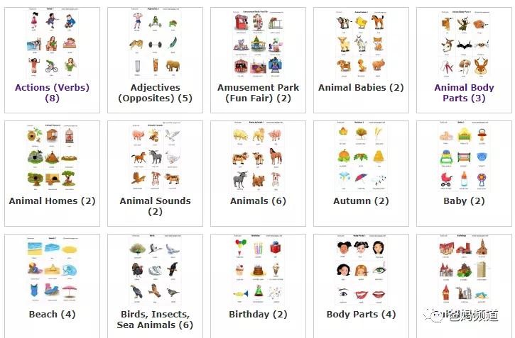 还有食物主题,衣服主题,基本概念, 动词卡等等。
