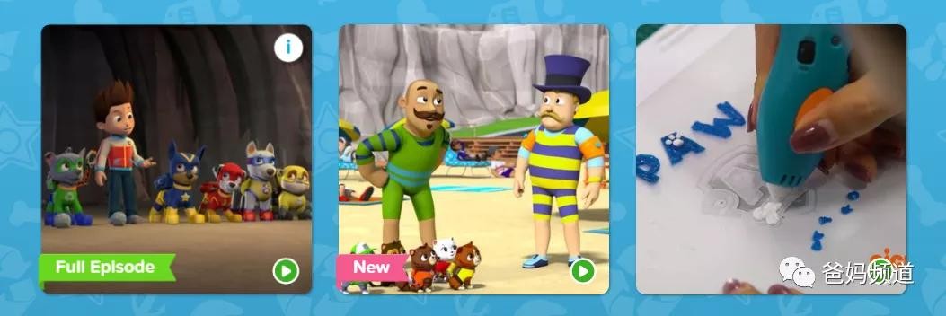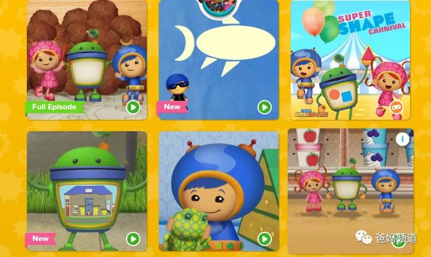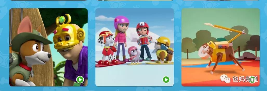 关键词:22部免费动画,包含汪汪队,朵拉,Team Umizoomi,等等。