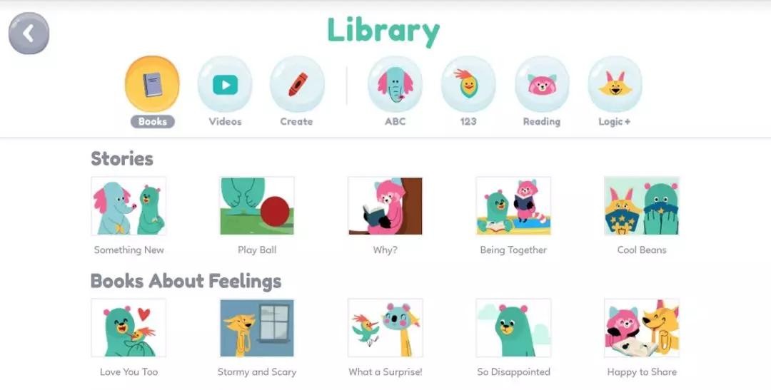 Library里面按资源形式分为了“book”(图书)、“videos”(视频)、 “create”(绘画);