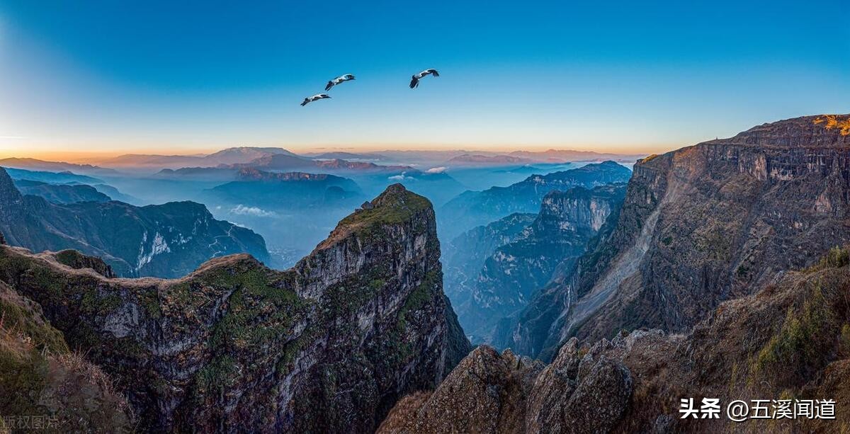 雲南鷄足山景勝之山嶺仰望雲天迷漫
