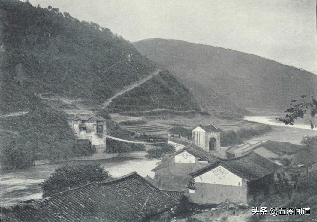 19世纪末外国人摄云南Shwell河与河上的吊桥