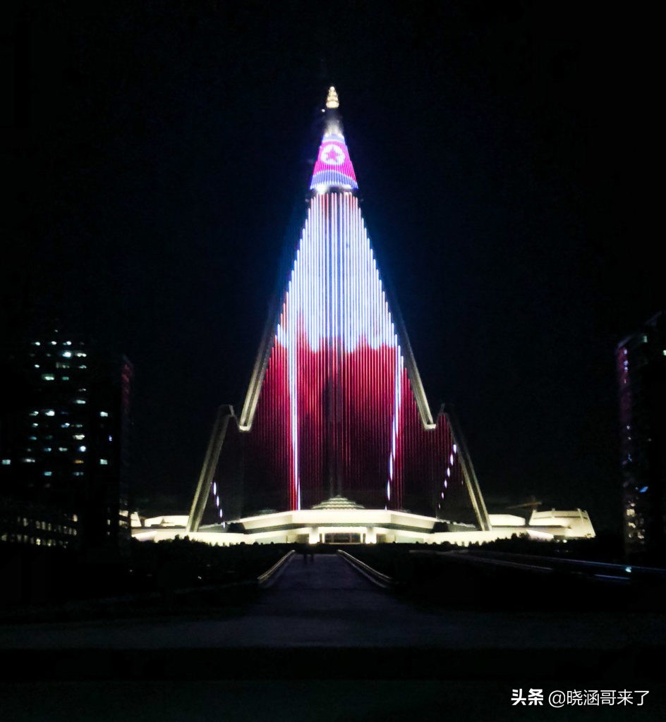 而现在来到平壤旅游的外国人,都能在市区看到一座蓝色玻璃幕墙的庞然大物,如同外星建筑一般矗立在平壤的市中心,它的外表和内部一样充满了神秘感。