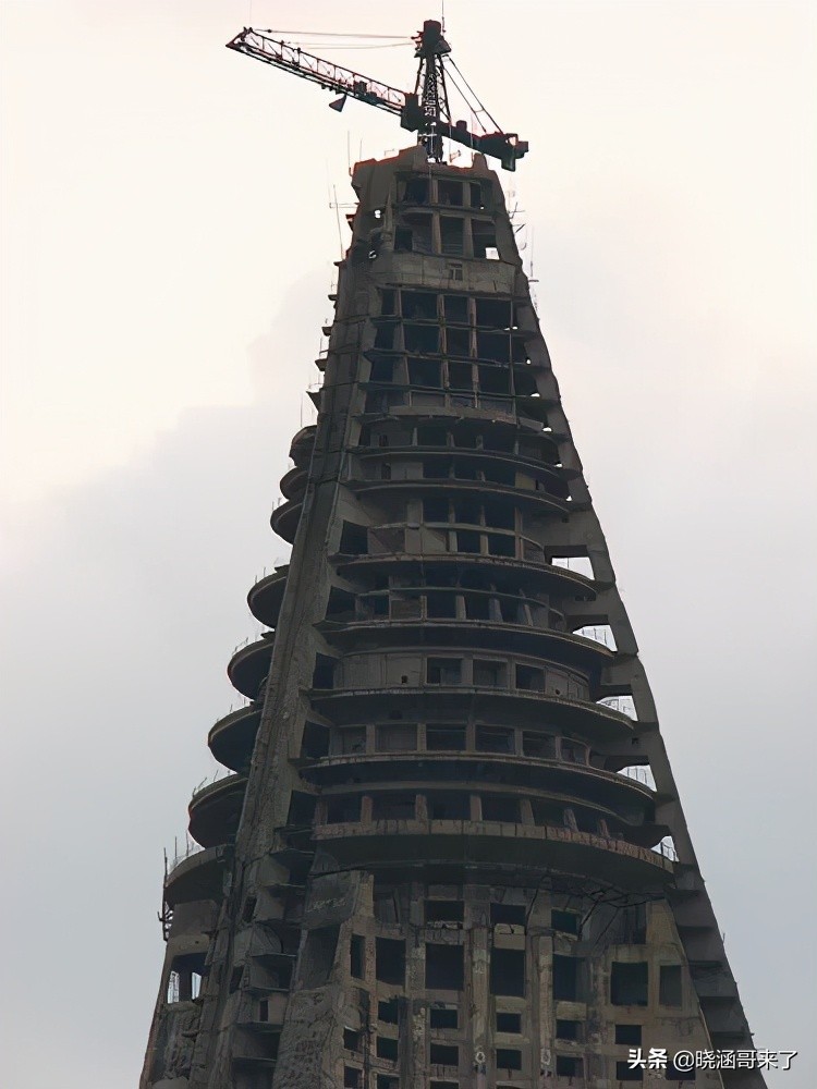 在十几年的时间里,这座未完工的建筑一直空置,没有安装任何窗户,玻璃幕墙和内部装饰,看起来就是一个巨大的混凝土空壳,一台生锈的建筑起重机留在了大楼顶部。
