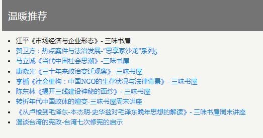 2010年三味书屋的一些沙龙和讲座,图源网络截图。