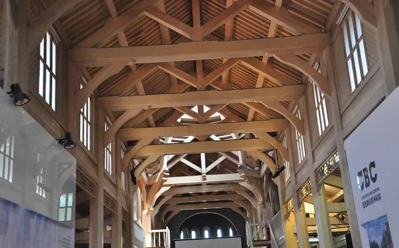 而在室内,教堂采用的是中式的木结构设计,同时也加入了必不可少的哥特式窄窗,尤其是站在教堂的八角石亭之下时,阳光透过亭子层层镂空的间隙照进来,好似一个巨大的万花筒,折射出奇异的花朵。