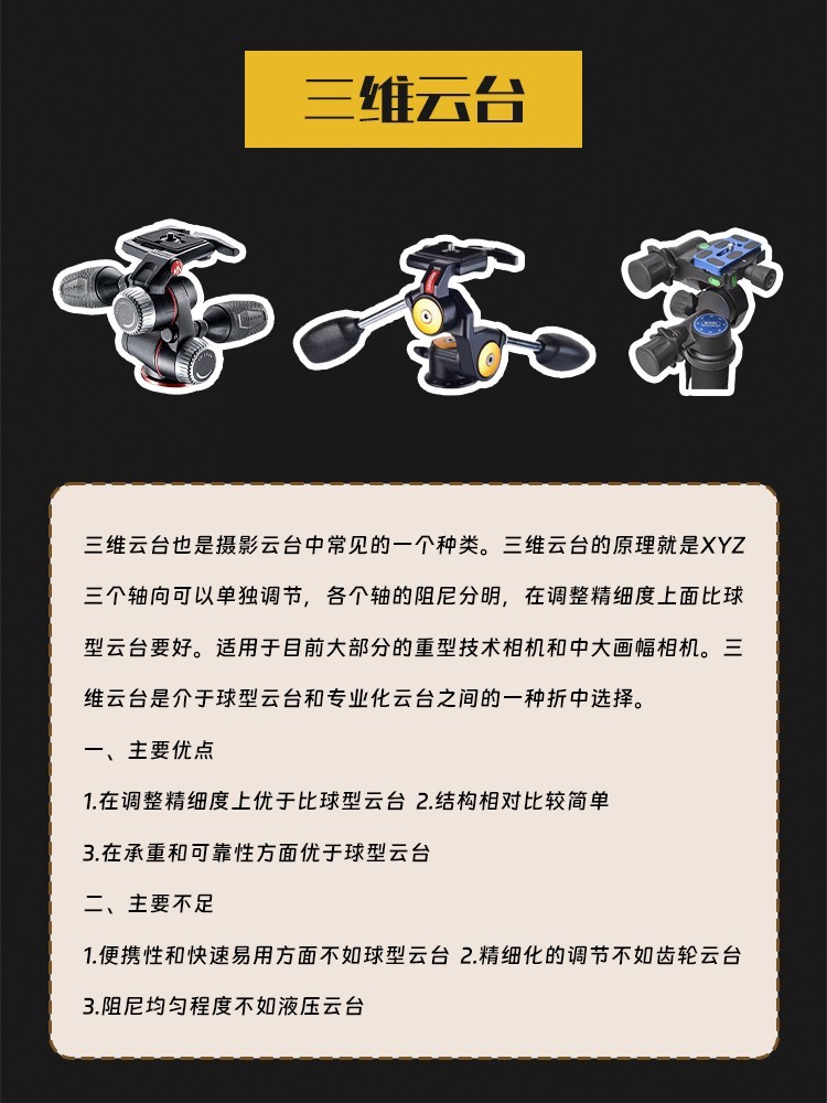 许多摄影师为了满足延时摄影和低光的需求,会考虑购买三脚架来稳定相机,以便于获得更好的拍摄效果,而云台和三脚架的类型一搜索,发现是五花八门的,价格跨度也很大,今天给大家分享三种云台的适用场景以及优缺点。