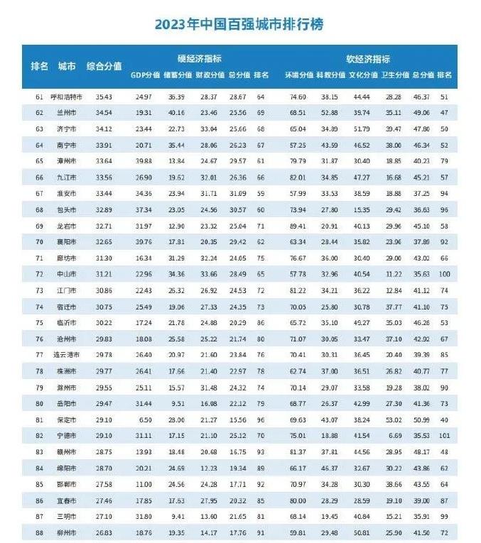 中国百强城市排行榜的发布引起了广泛的关注和讨论。