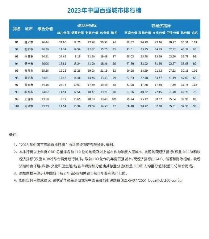 而在新晋百强城市中,上饶排名第99位,取得了一定的突破,而滨州则退出了百强城市的行列。