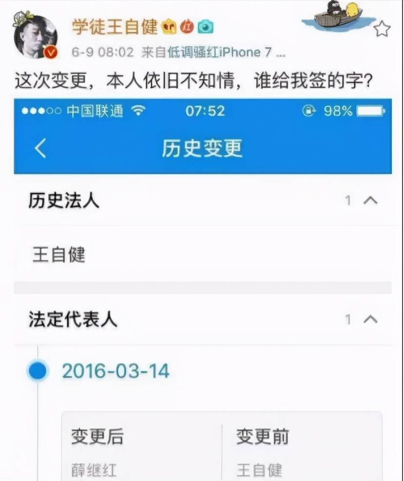 该相声团体自两人离婚后,法人就变更了,王自健说我都不知道谁给我签的名