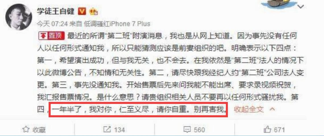 这个相声团体就由前妻进行管理,并且两人离婚后前妻依然打着王自健名义进行演出