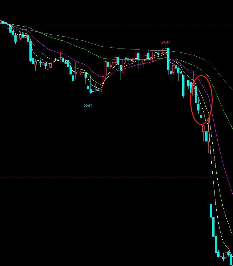 上文提到的是向上跳空两只乌鸦,本次讲解的是三只乌鸦,三只乌鸦构筑的是顶部结构行情或者说是空头延续。三只乌鸦是指价格连续三天都是出现跳空低开低走的K线,收盘价格都一根比一根低,勾勒出一幅不详景象,后市继续看空的寓意。