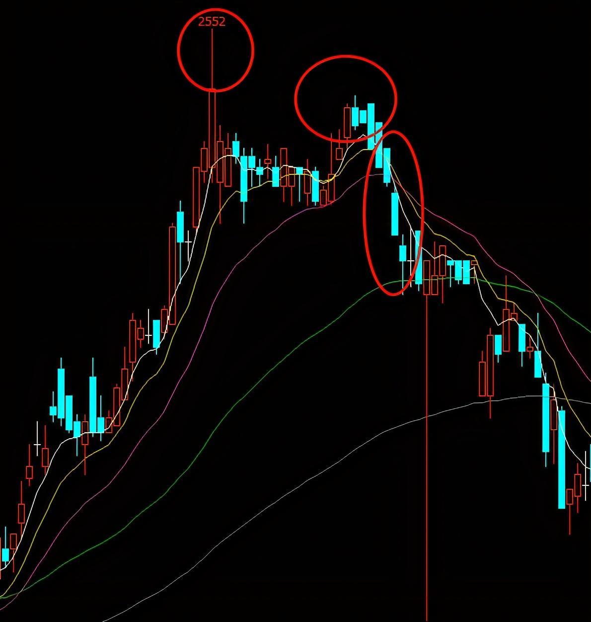 例如下图则是三只乌鸦出现的头部结构配合颈线突破,接下来就是一波加速的杀跌行情。