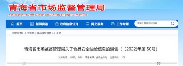 中国质量新闻网讯 2022年12月26日,青海省市场监督管理局网站发布关于食品安全抽检信息的通告(〔2022)年第50号)。据通告,该局近期在组织开展的2022年青海省食品安全抽检监测任务中,抽检了酒类46批次,经检验全部合格。
