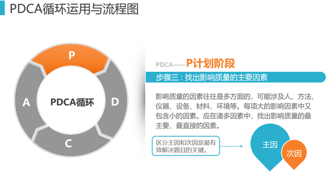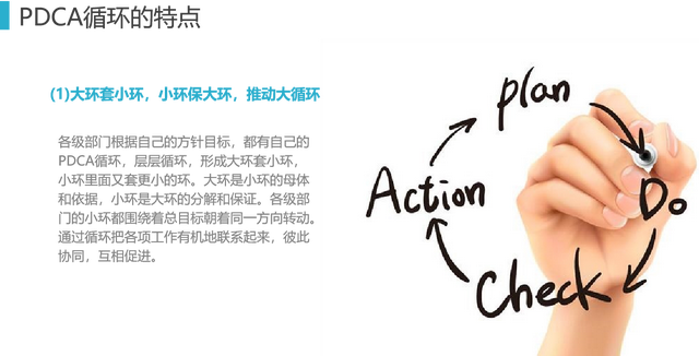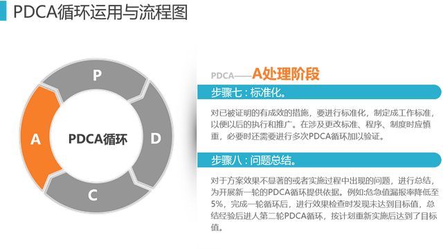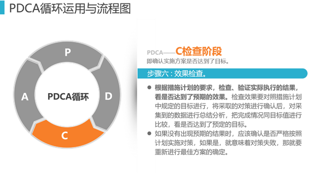 工具7、PDCA: PDCA循环是美国质量管理专家沃特·阿曼德·休哈特(Walter A. Shewhart)首先提出的,由戴明采纳、宣传,获得普及,所以又称戴明环。全面质量管理的思想基础和方法依据就是PDCA循环。PDCA循环的含义是将质量管理分为四个阶段,即Plan(计划)、Do(执行)、Check(检查)和 Act(处理)。在质量管理活动中,要求把各项工作按照作出计划、计划实施、检查实施效果,然后将成功的纳入标准,不成功的留待下一循环去解决。这一工作方法是质量管理的基本方法,也是企业管理各项工作的一般规律。通过下面12张图介绍给大家。
