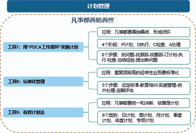 第三、计划管理:《礼记.中庸》中说过程“凡事预则立,不预则废”,意思是做任何事情,事前有准备就可以成功,没有准备就会失败好处,这里的准备就是计划;三个工具介绍给大家