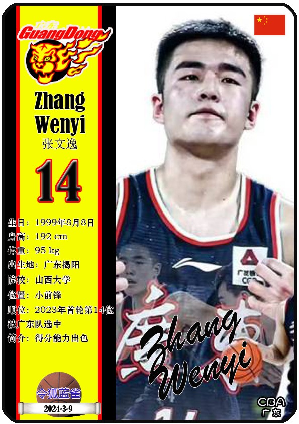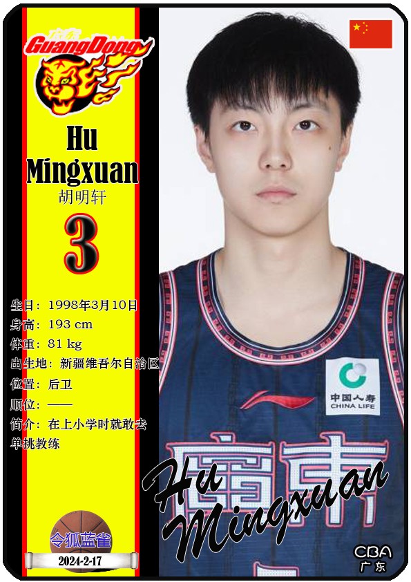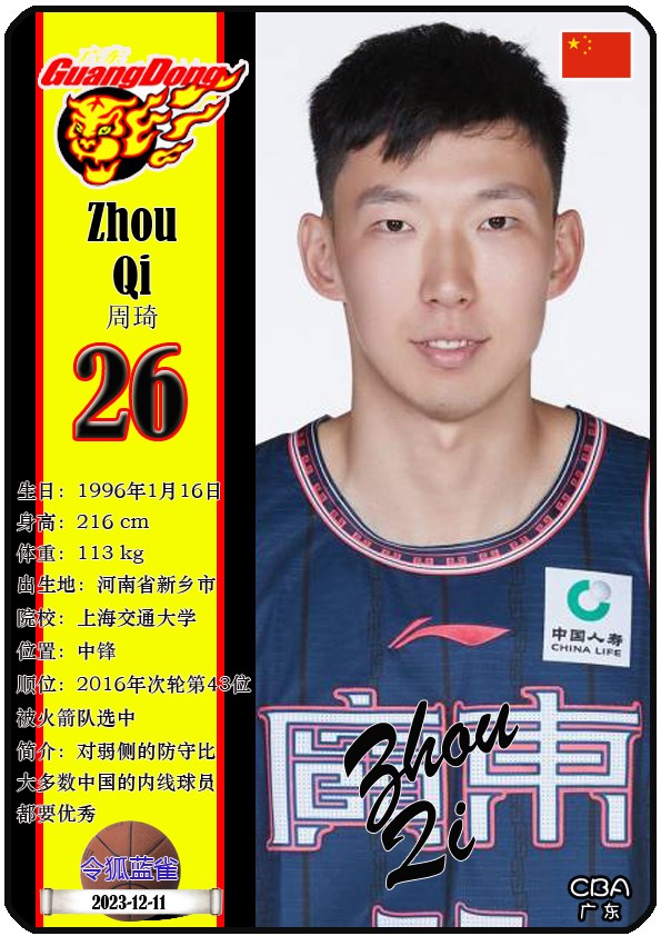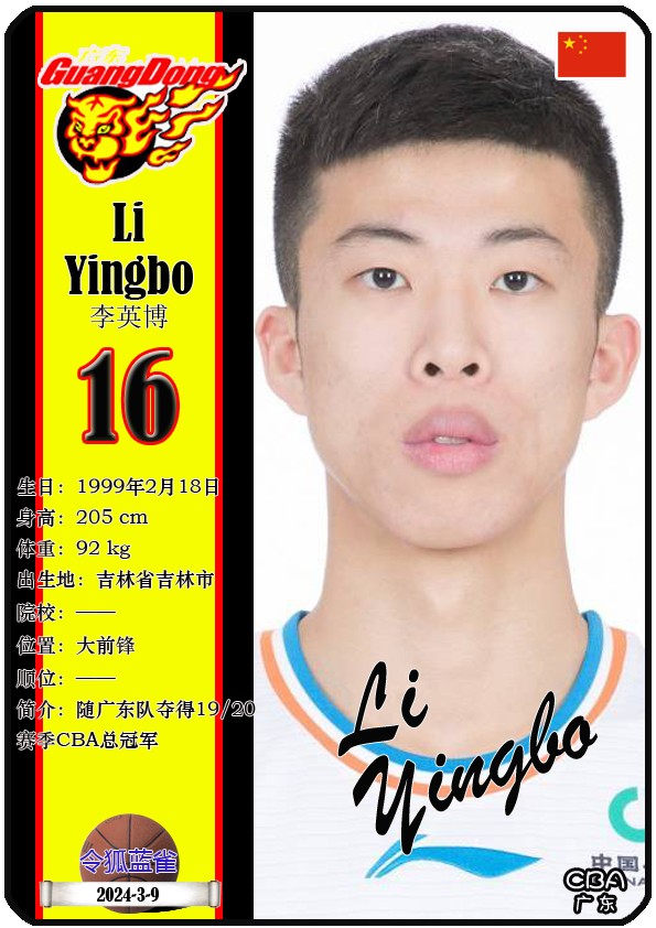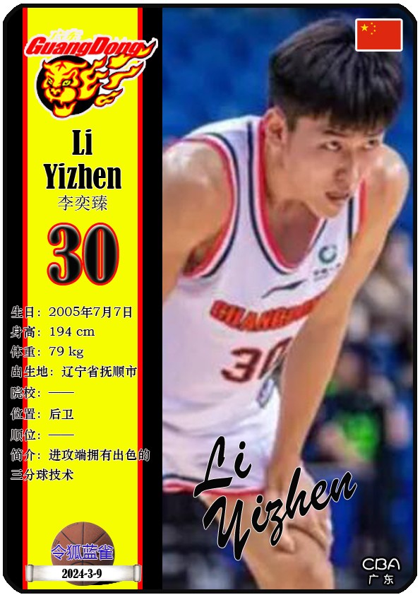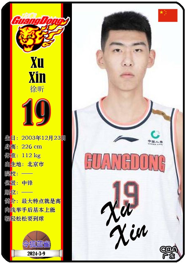 球星卡(CBA):广东队19人一览(23-24赛季)