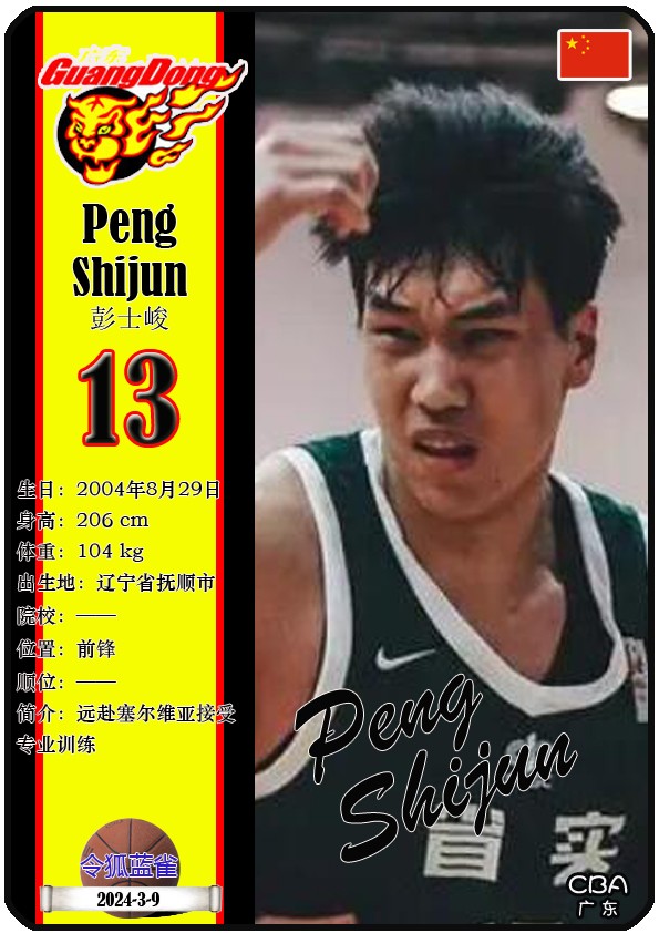 杜润旺( 2024-2-23 000056 )胡明轩( 2024-2-17 223039 )黄明依( 2024-3-9 135756 )李奕臻( 2024-3-9 135809 )李英博( 2024-3-9 135801 )马宇启( 2024-3-9 135759)彭士峻( 2024-3-9 135807 )任骏飞( 2024-3-9 135732 )索尼-威姆斯( 2024-3-9 135735 )特里蒙特-沃特斯( 2024-3-9 135729 )徐杰( 2024-2-17 223042 )徐昕( 2024-3-9 135737 )张昊( 2024-3-9 135753 )张皓嘉( 2024-3-9 135748 )张明池( 2024-3-9 135751 )张文逸( 2024-3-9 135740)赵锦洋( 2024-3-9 135804 )赵戌宏( 2024-3-9 135742 )周琦( 2023-12-11 225858 )
