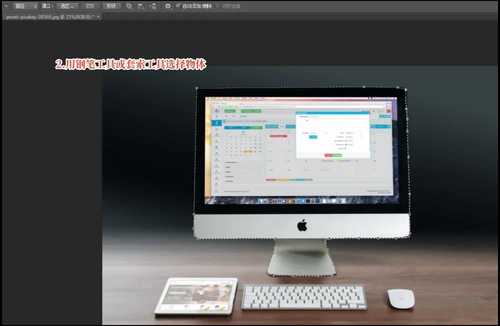 第二步:使用钢笔工具或者其他套索工具来完成图片中物品或人物的选择。
