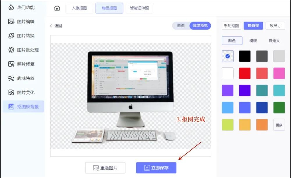 第三步:图片上传后,等待图片抠图后的效果即可。这里支持一键抠图,非常方便。