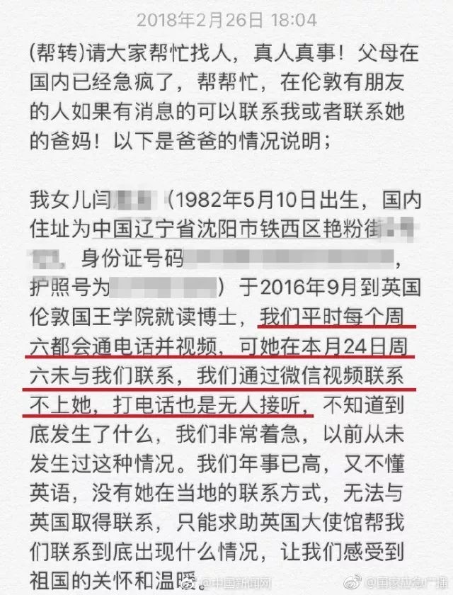 急转!中国一女留学生在伦敦失联