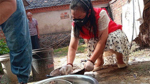 李莲生老人是村里的低保户,常年患病,加之年事已高,身体状况不佳,本就口齿不清的他,面对向日葵公益志愿者们的到来,感动不已,连连道谢。