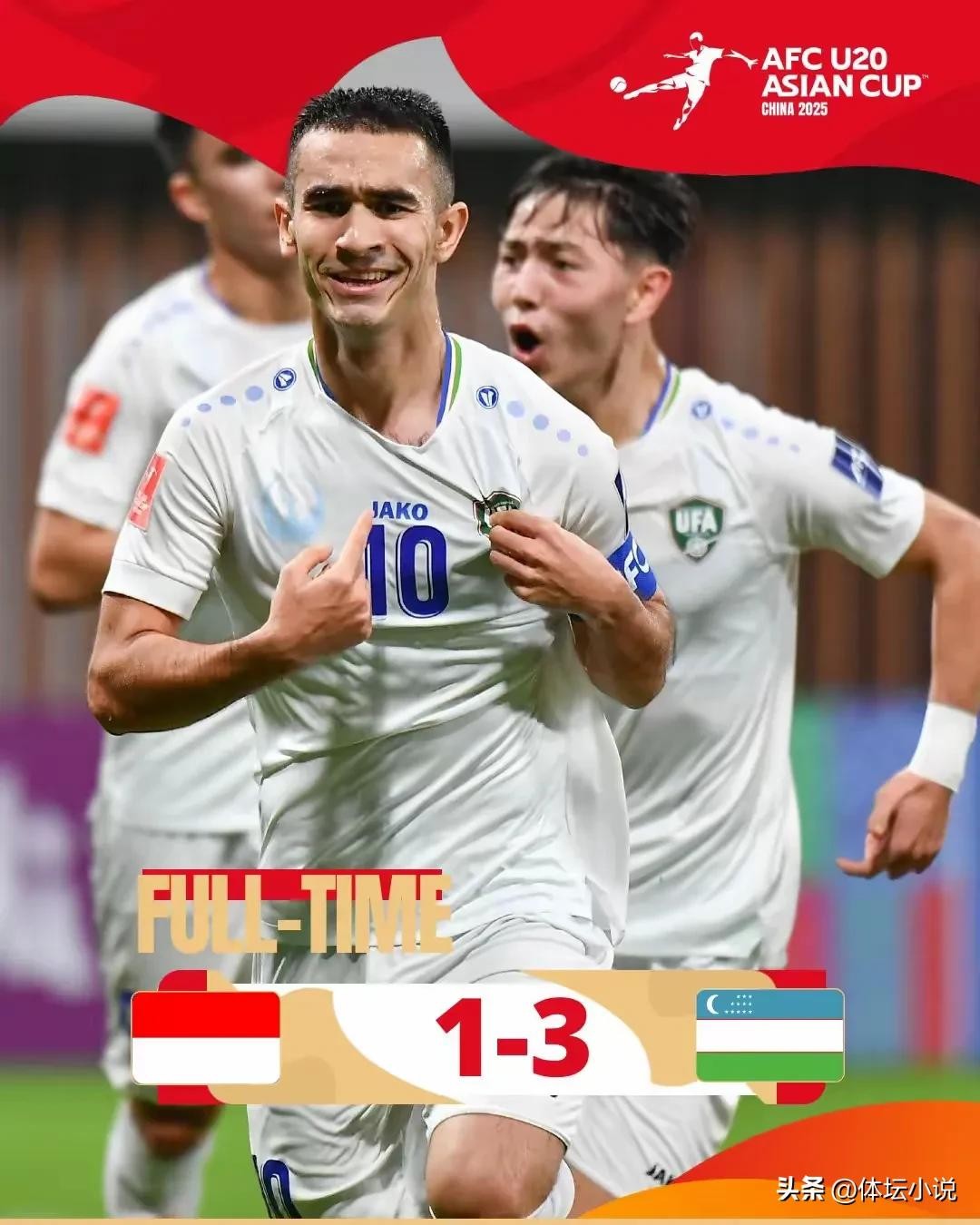 乌兹别克斯坦作为上届冠军,首轮仅1-0小胜也门,本轮面对印尼,上半场两队平分秋色各自打进一球,但是下半场乌兹别克斯坦展示出技高一筹的实力,渐入佳境送出两连击以3-1带走胜利,收获两连胜提前一轮晋级八强!