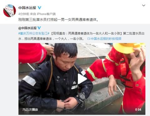 10月28日下午2时左右,重庆坠江公交车打捞出两名人员的遗体。